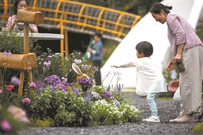 进入“儿童花园”,既能置身于花丛中,又可以在植物之间嬉戏游玩。