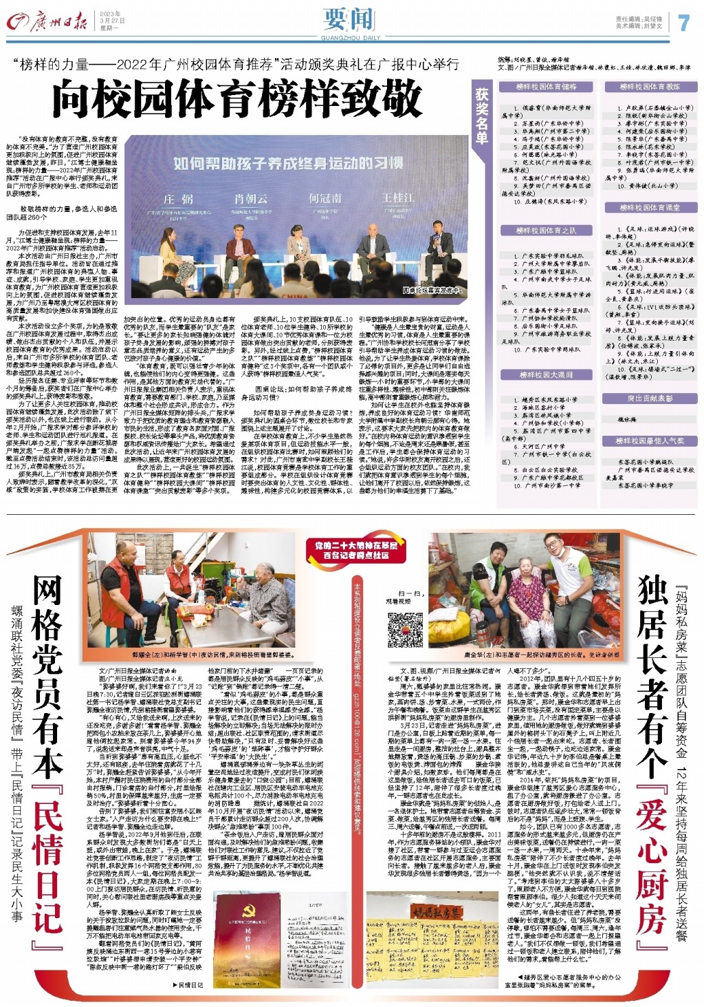 “没有体育的教育不完整,没有教育的体育不完美。”为了营造广州校园体育更加积极向上的氛围,促进广州校园体育继续蓬勃发展,昨日,“江博士健康鞋呈现:榜样的力量——2022年广州校园体育推荐”活动在广报中心举行颁奖典礼,来自广州市多所学校的学生、老师和运动团队获得表彰。