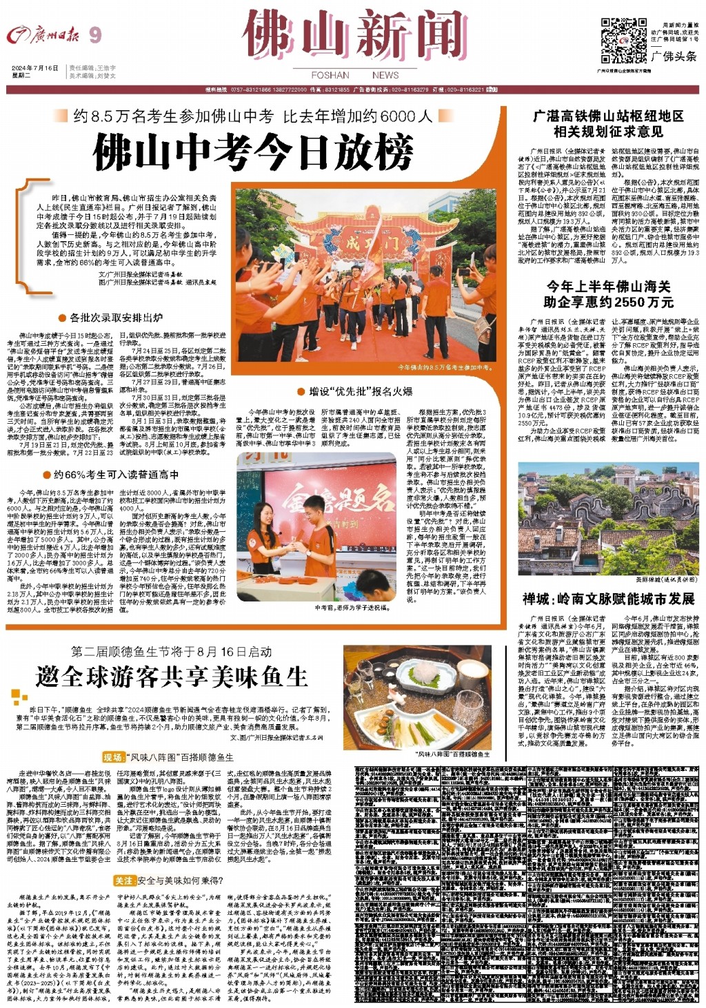 昨日,佛山市教育局、佛山市招生办公室相关负责人上线《民生直通车》栏目。广州日报记者了解到,佛山中考成绩于今日15时起公布,并于7月19日起陆续划定各批次录取分数线以及进行相关录取安排。