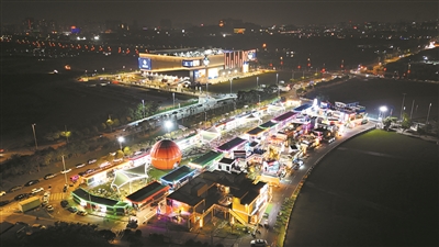 约6000平方米的夜市美食区,主要聚焦夜市美食与潮流文创,设有122个夜市摊位,其中美食小吃摊位、饮品摊位、文创摊位分别占比70%、20%、10%。夜市还创新设计了5个篮球主题天幕,并且配备了1500个公共座位,汇聚了特色小吃和潮流文创产品,可轻松满足市民的美食需求和购物体验。夜市潮玩区约3000平方米,汇聚了夜市服务中心、铁骑驿站、环卫驿站、城管驿站以及亲子游乐区、音乐舞台区、潮牌快闪店、汽车产业融合区等八大功能区域。