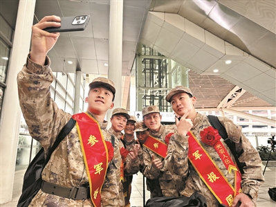 3月16日开始,2025年春季入伍新兵运输工作全面启动。早上7时30分,在广州南站候车大厅内,身着迷彩服、肩披绶带、胸戴红花的新兵军容严整、精神抖擞,成为一道引人注目的风景线。