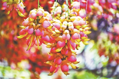 春光里,和风下,一起去看禾雀花。看它似雀不喳喳,看它栖息藤上挂,它似雀中一枝花。看花人为之着迷,纷纷掏出手机拍照打卡。