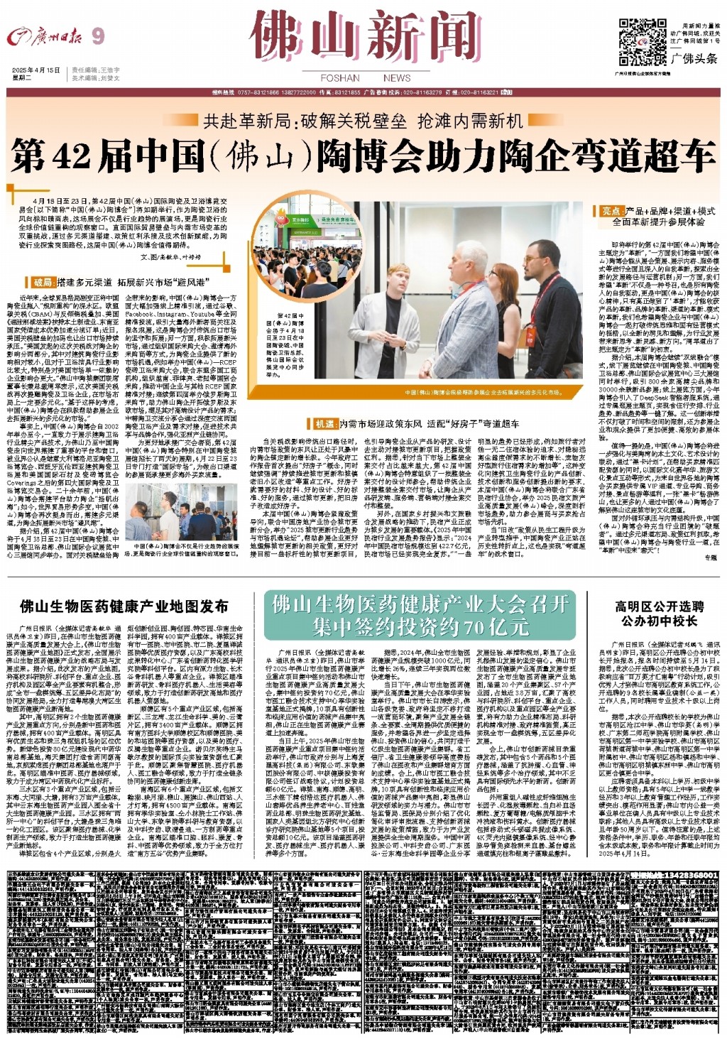 广州日报讯 (全媒体记者高敏华 通讯员佛卫宣)昨日,在佛山市生物医药健康产业高质量发展大会上,《佛山市生物医药健康产业地图》正式发布,全面展示佛山生物医药健康产业的战略布局与发展成果。据介绍,此次发布的产业地图,将高校科研院所、科创平台、重点企业、医疗机构及园区等全产业要素有机整合,形成“全市一盘棋统筹、五区差异化布局”的协同发展格局,全力打造粤港澳大湾区生物医药健康产业新高地。