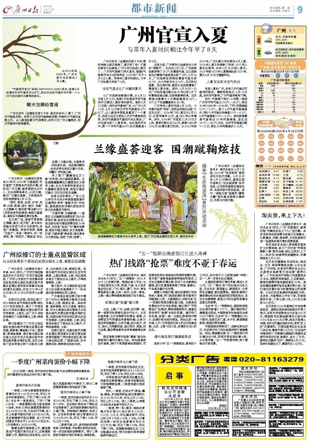 广州日报讯 (全媒体记者叶卡斯)都热得穿上短衣短裤了,夏天来了吗?不要怀疑自己的感觉,广州今年已经进入夏天了。广州市气象部门昨天宣布,根据《气候季节划分》标准判定,2025年广州于4月8日入夏。和常年入夏时间相比,今年广州的夏天早到了8天。