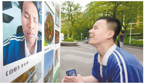活动现场,视障学生康金塬遇见了自己的非视觉摄影作品。